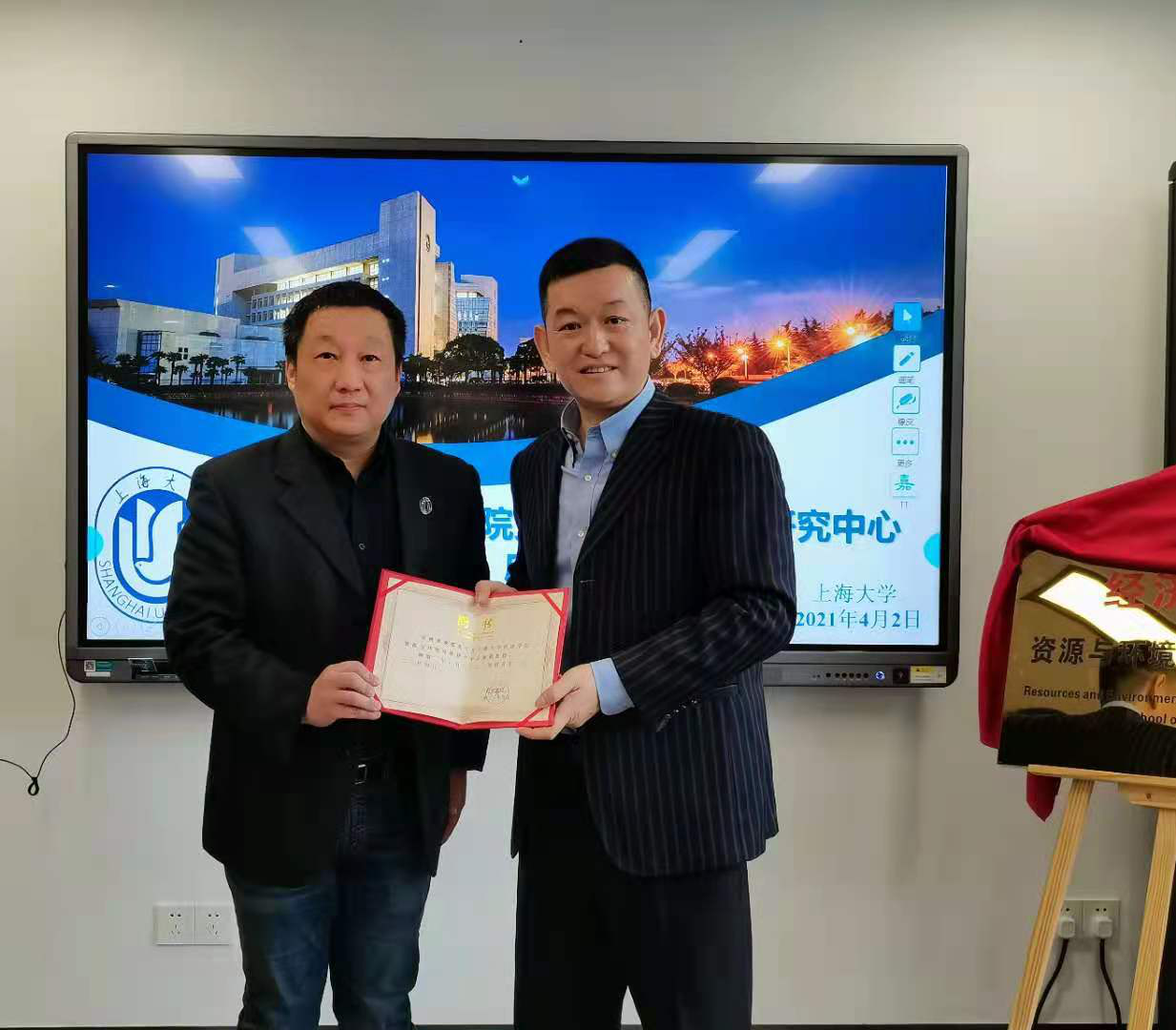 接着,陆甦颖为焦正、聂永有颁发了主任聘书,期待发挥双方的资源优势和学科优势,推进资源与环境经济的高质量发展;随后,校企代表共同为研究中心揭牌。