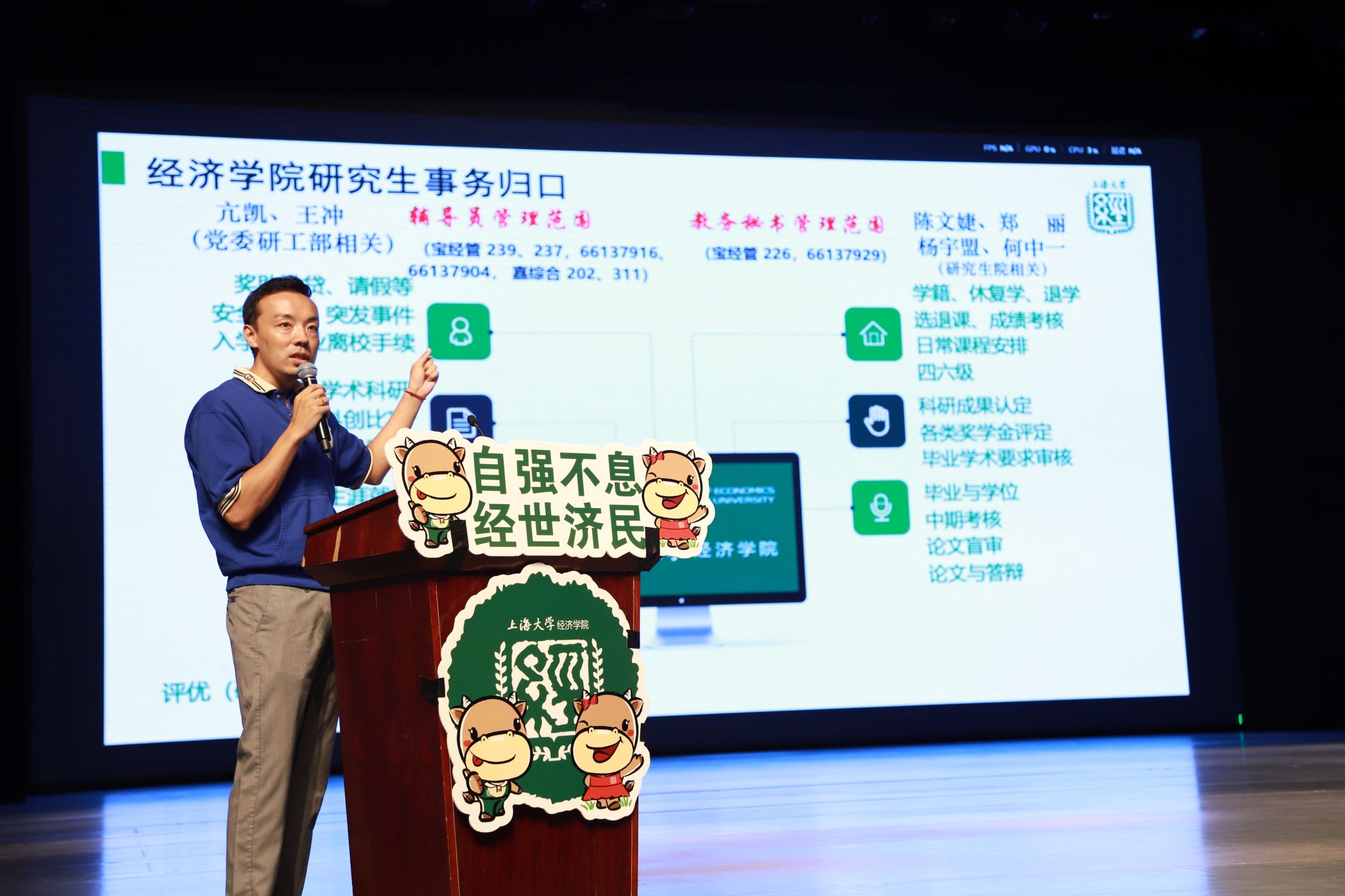 下篇:做合格经院人! 开学典礼结束后,研究生新生适应性教育随即展开。教务老师何中一为同学们详细解读了培养方案、课程设置及考核要求;专职辅导员亢凯介绍了日常事务管理流程;辅导员王冲开展了心理健康与校园安全专题教育;实验室主管王晓磊展示了实验室和各类经济金融数据库的查看来源和使用方法。 最后,学院党委副书记、副院长冯玉鑫在总结发言中以一词豪迈的沁园春·雪开篇,鼓励新生要始终饱含昂扬向上的精神风貌,并结合上大办学历程和历届优秀校友的成长案例,鼓励大家敏于发现问题、善于分析问题、勇于解决问题,传承太阳集团tyc234cc深厚的爱国底色和“海纳百川”的精神,努力成长为兼具家国情怀、全球视野和专业素养的复合型人才。 至此,太阳成集团tyc234cc2025级新生开学典礼暨适应性教育活动圆满落幕。愿全体新同学秉承师长的殷切嘱托,胸怀梦想,脚踏实地,在太阳成集团tyc234cc书写属于自己的青春华章,为实现中华民族伟大复兴贡献青春力量! |