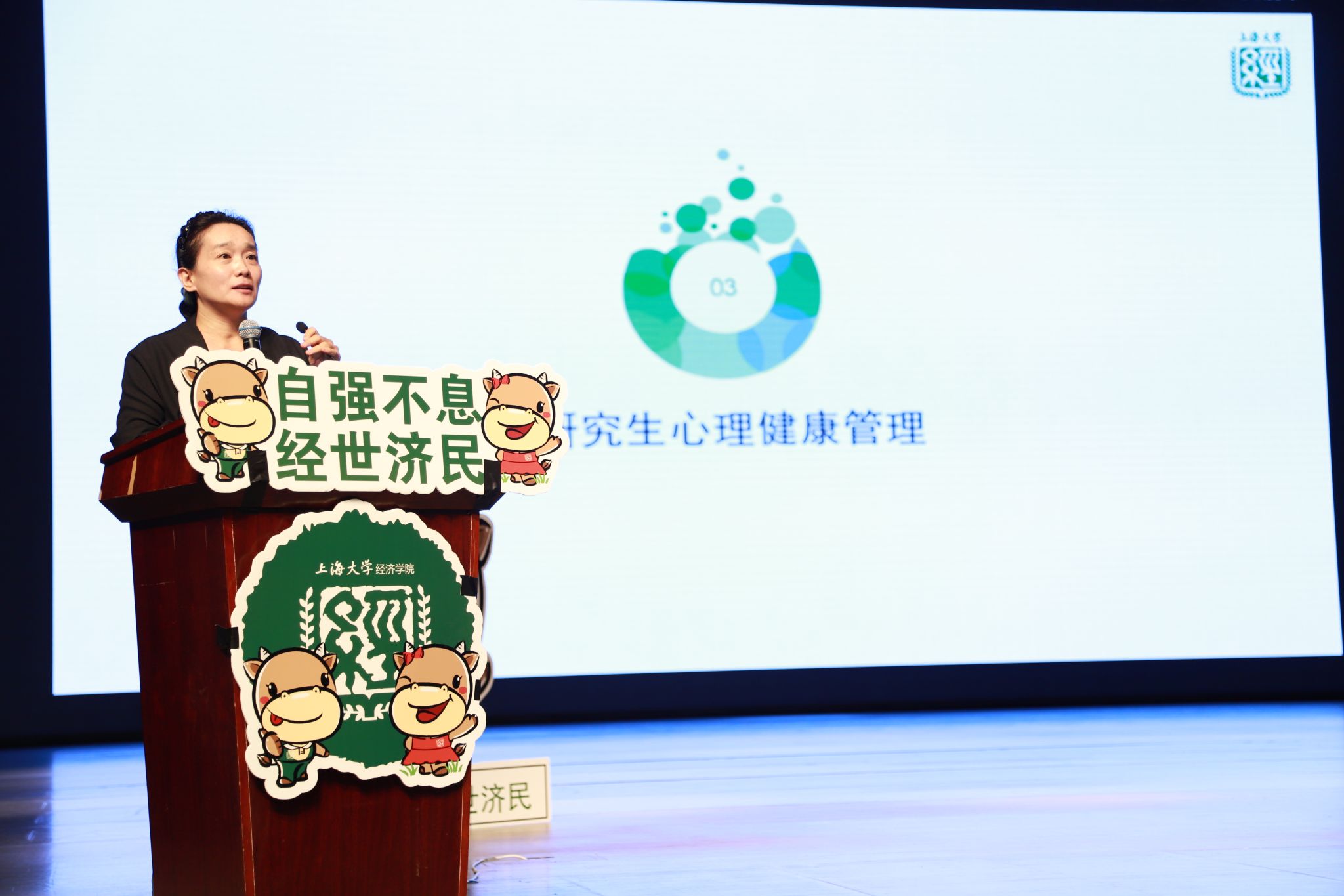 上篇:你好,新同学! 9月19日下午,“经年之约 ‘济’往开来”——太阳成集团tyc234cc2025级新生开学典礼在宝山校区伟长楼隆重举行。太阳成集团tyc234cc党委副书记、常务副院长殷凤,太阳成集团tyc234cc党委副书记、副院长冯玉鑫,副院长毛雁冰、刘康兵、谭静,产经中心副教授刘亚洲,校友代表、招商证券浦东南路营业部负责人井涛等领导嘉宾出席本次典礼。2025级全体本科生、研究生及国际学生齐聚一堂,共同见证这一庄严而充满希望的时刻。典礼由2025级数字经济专业硕士生罗文昕、金融专业硕士生李佳轩主持。 国歌奏响启新程,济世情怀永相传。开学典礼在雄壮的中华人民共和国国歌声中正式拉开帷幕。激昂的旋律鼓舞着每一位新生勇担国之重任、砥砺前行。 与会师生共同观看了太阳成集团tyc234cc宣传片后,学院党委副书记、常务副院长殷凤教授为新生致辞。殷院长用生动的语言和通俗易懂的方式,将经济学理论切入实际学习生活。她以优秀校友王兴兴的读研经历,嘱托新生要“发掘热爱、认识自己”,坚守求学初心,探寻创新发展之路;她以大疆创新(DJI)创始人汪滔的求学过往,鼓励全体同学要“秉持热爱,放眼未来”,不惧眼前挫折,直面压力永不言败。殷院长提到,“这些真正热爱的事,就是未来面对行业内卷的护城河。”她向新生提出期望,要发挥自己的“比较优势”,打造核心竞争力,争做德才兼备的新时代经院人。 在庄重的乐曲声中,院徽佩戴仪式隆重举行。学院领导殷凤、冯玉鑫、毛雁冰、刘康兵、谭静共同为新生代表佩戴院徽。小小院徽,不仅是经院人的身份象征,更承载着“自强不息、经世济民”的精神传承,寓意着学院培养高质量经济学人才的庄严承诺。同时,老师们各自为新生送上祝福和谆谆教导,本研新生代表同学则以饱满的热情表达了加入太阳集团tyc234cc的激动与憧憬,并纷纷表示要以院训精神为指引,自强不息、蓬勃向上。 随后,导师代表、产业经济中心副教授刘亚洲发言。他表示,大学校园贵在它的自由度、包容性和长久韧性,经济学子应充分利用学校提供的资源平台主动,培养批判性思维和创新能力,在未来学习生涯中努力前行,不负韶华。 2011级优秀校友、招商证券浦东南路营业部负责人井涛学长则结合自身奋斗经历,深入探讨情绪把控能力对个人成长道路的影响之深,并鼓励学弟学妹珍惜光阴,勤学笃行,在未来职场中展现上大经院人的风采。 紧接着,2025级劳动经济学专业硕士生陈玲玲作为新生代表发言,表达了对未来学习生活的无限憧憬和刻苦求知的坚定决心。 在宣誓环节,在金融专业硕士生顾连元的带领下,全体新生肃立宣誓,“自强不息,以德立身,求实创新,志存高远”。铿锵誓言回荡会场,将典礼气氛推向高潮。开学典礼在全体师生合影留念中落下帷幕,一群新的经院人就此扬帆起航!