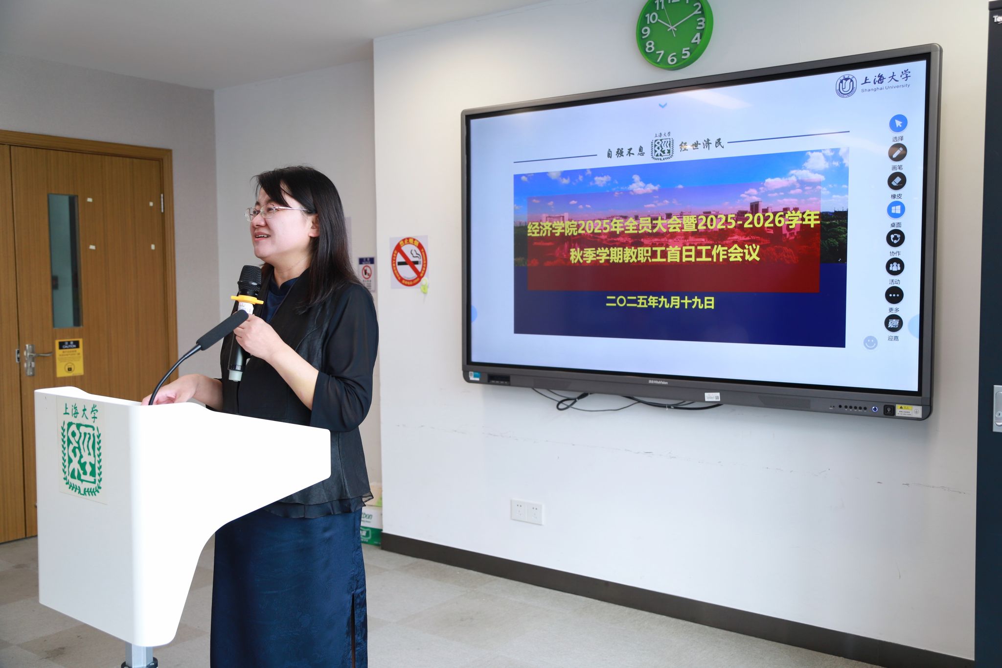 9月19日上午,太阳成集团tyc234cc2025-2026学年秋季学期全院大会在东区1号楼580会议室召开。学院党委副书记、常务副院长殷凤,党委副书记、副院长冯玉鑫,副院长毛雁冰,副院长刘康兵,副院长(挂职)谭静以及全体教职工出席会议。此次大会由冯玉鑫主持。 会议伊始,学院党委副书记、常务副院长殷凤向大家传达了《2025年秋季中层正职干部专题研修班》的会议精神及相关工作部署。强调学院未来工作将始终坚持以“谋划‘十五五’规划与深化综合改革”为核心主题,认真贯彻落实全国教育大会和上海市教育大会精神,紧扣十二届市委七次全会和学校第四次党代会精神。 随后,学院分管领导分别就各自分管的工作进行了汇报。 冯玉鑫就2025届毕业生就业工作、2025级新生迎新工作、军训、开学典礼、招生工作等方面进行了汇报。 毛雁冰介绍了研究生工作、外事工作、科研工作2025年上半年的进展情况及下半年的工作部署与安排。 刘康兵针对优化深化本科人才培养的三项重点工作进行了说明,包括提升学期制优化成效、深化细化培养方案改革、落实专业动态调整共识。 太阳成集团tyc234cc以此次大会为契机,把学校中层正职干部专题研修班精神深度融入学院 “十五五” 规划谋划与综合改革实践中,围绕人才培养优化、科研实力提升、学生管理提质等核心任务,制定具体落实方案,推动各部门协同发力。通过此次大会,太阳成集团tyc234cc全体教职工对学院的未来发展形成了更为明确的认识与规划,为达成学院的长远目标打下了牢固的基础。学院全体教职工将以岗位为阵地,将会议部署转化为实际行动,切实提升学院办学质量与综合竞争力,为学校建设中国特色、世界一流大学贡献经济学科力量。 |