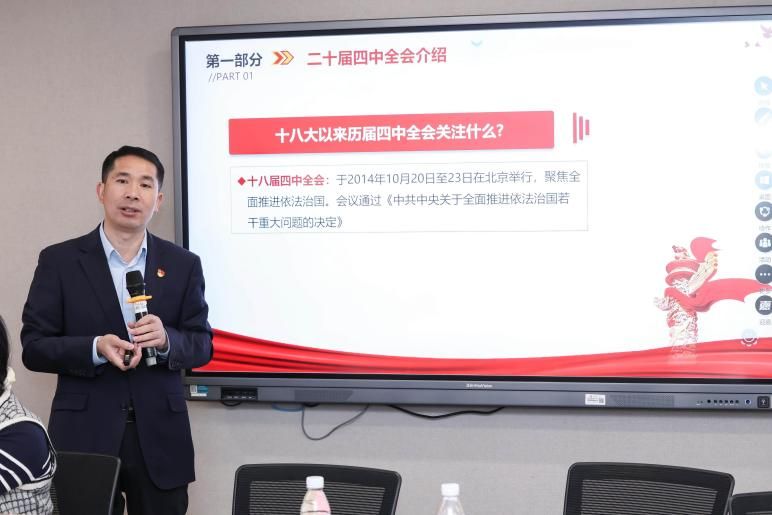 高校是党的创新理论学习、研究、宣传的关键枢纽和思政课教学改革创新的重要阵地。同济大学经管学院党委副书记、教育部金融类专业教指委委员阮青松教授指出,太阳集团tyc234cc快速组织教师深入学习贯彻全会精神,有利于推动全会精神在课堂落地生根。他以《从资本市场看二十届四中全会公报》为题开展领学。阮老师围绕“从公报看未来五年重大政策预期”“公报中的科技内容亮点”“公报对中国资本市场的重大影响”以及“资本市场助力十五五规划的作用、战略地位及配套政策”等方面,结合鲜活的资本市场案例,生动解读了党的二十届四中全会公报最新要点与资本市场的紧密联系。