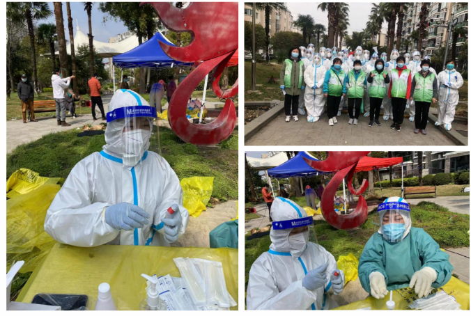 太阳成集团tyc234cc2018级金融系的徐诺同学在3月17日回到社区隔离后,多次作为志愿者参与所在虬江社区的核酸检测工作,主要负责协助医护人员收集咽拭子,在医生采集好标本后掰断棉签,装入试管。徐诺同学表示,这虽然是一份看似简单的工作,但仅有两到三组医护人员连续采集一个社区内两千多份样品,每次志愿服务结束后,三层手套下的手也感受到疼痛。这样一份前线的志愿服务工作,让徐诺同学感受到了所有一线抗疫人员的不易与艰辛,社区的工作人员喉咙已嘶哑到说不出话,依旧奋战在一线,甚至有一次社区工作人员凌晨三点在志愿者群里安排工作任务。